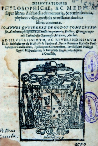 El presente tratado, escrito en latín y dedicado al Cardenal Baltasar Moscoso, lo sitúa dentro de la corriente neoescolástica emergida a raíz de la Contrarreforma. En los nueve capítulos de la primera parte, estudia la memoria y la reminiscencia basándose en los tratados de Aristóteles, De memoria y De anima. En la segunda parte, estudia las lesiones de la memoria y sus remedios; entre ellos describe el empleo de la anacardina. Juan Gutiérrez Godoy ocupa también un puesto importante en el capítulo de la farmacopeas del siglo XVII con el libro Advertencias y preceptos generales con los cuales pueden fácilmente tasar cualquier receta en las boticas (Jaén, 1632), sin localizar. (M. D. Rincón)